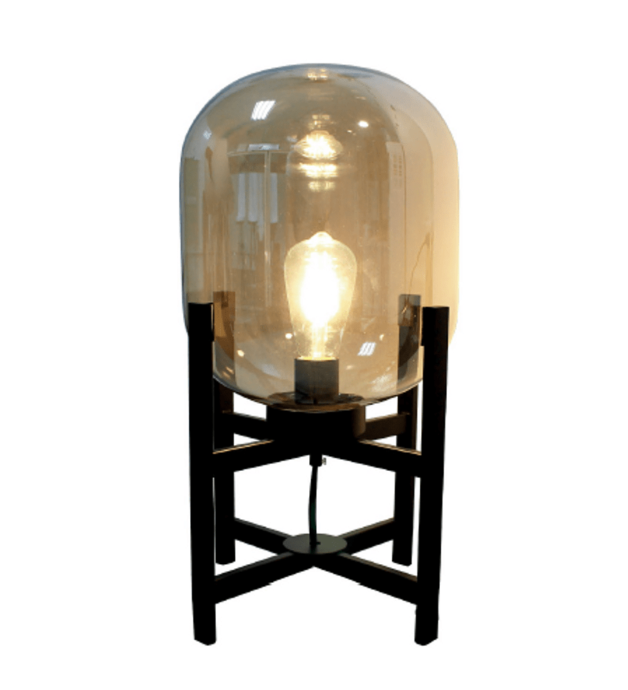 Lampara color ámbar con base de metal en color negro mate disponible en 2 tamaños.